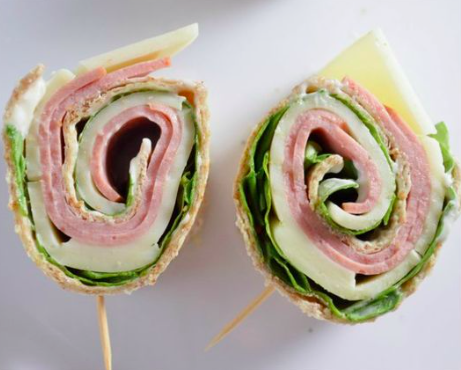 - Then, slice off slices of the pinwheel sandwich roll that are one inch thick and arrange on a plate.